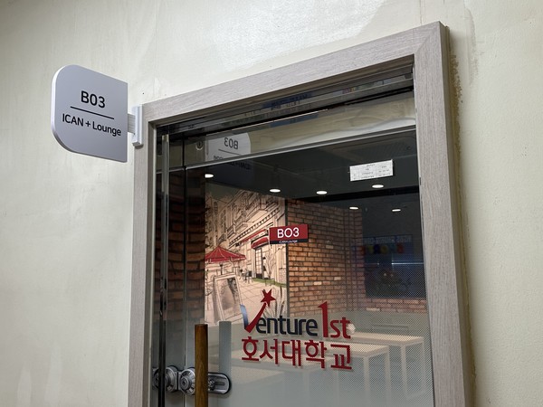 아이캔 라운지는 1호관 지하, 이마트24 편의점 맞은편에 있어요. 간단히 식사나 간식을 해결하면서 공부할 수 있는 공간이에요. 조용한 분위기보다는, 간식을 먹으며 편하게 공부하고 싶은 분들께 추천해요.