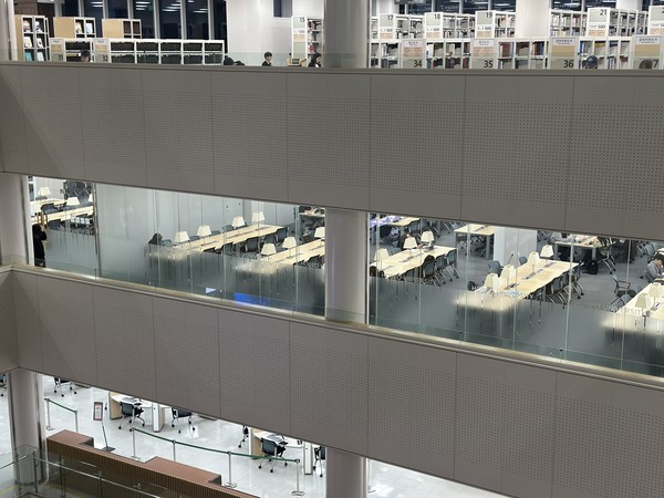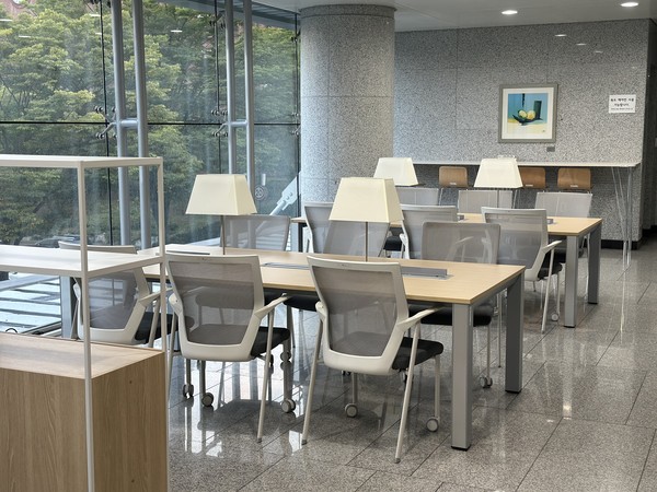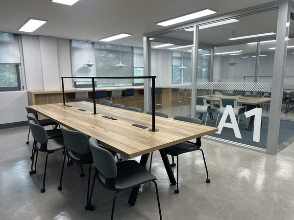 푸른 통창 옆에서 공부하고 싶다면 벤처교육관 2층을 추천드려요. 본래 강의실로만 쓰이던 공간이었지만, 이번 학기부터 학생들을 위한 학습 공간으로 새롭게 꾸며졌어요. 넓은 테이블과 개인 좌석이 마련돼 있어, 탁 트인 공간에서 공부하기 좋아요.